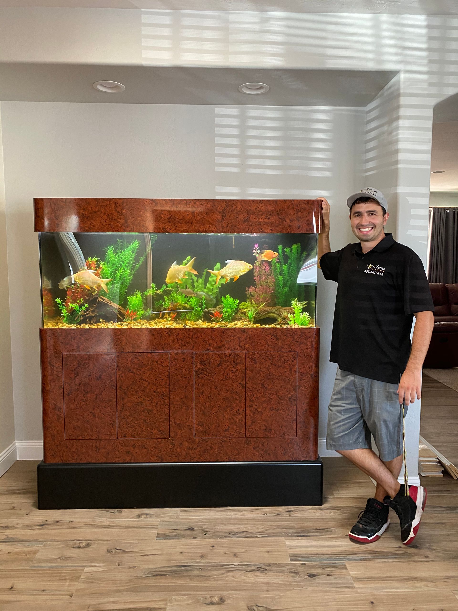 5 Star Aquariums constructs personalized aquariums for residences and businesses throughout Oceanside, Carlsbad, Vista, San Marcos, Escondido, Encinitas, and neighboring areas. Our aquariums are meticulously crafted to cater to the unique requirements of every client. We offer comprehensive aquarium maintenance and installation services, encompassing delivery, plumbing, filtration system setup, fish acclimatization, and bespoke aquarium design.